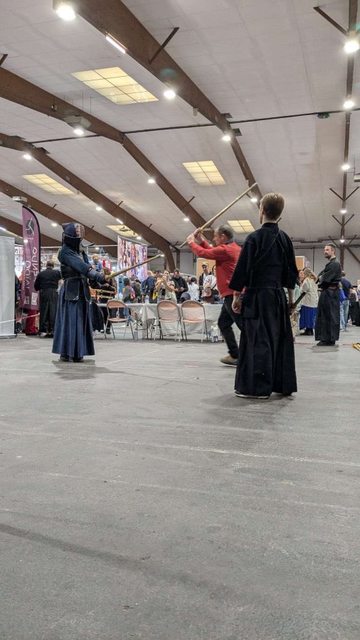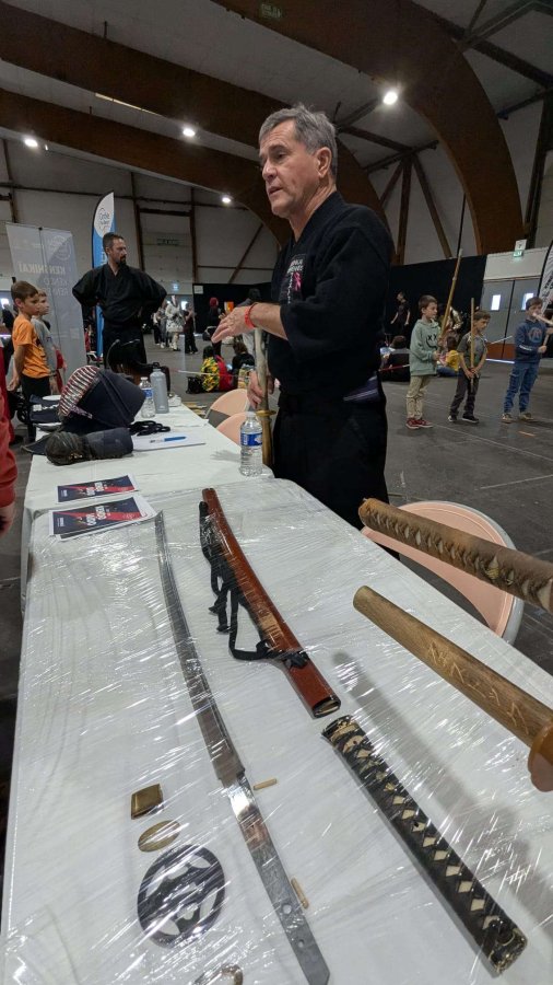 Durant ces deux jours, 108 adultes et enfants ont pu essayer gratuitement le Kendo et découvrir sur scène les premiers katas de Iaido.